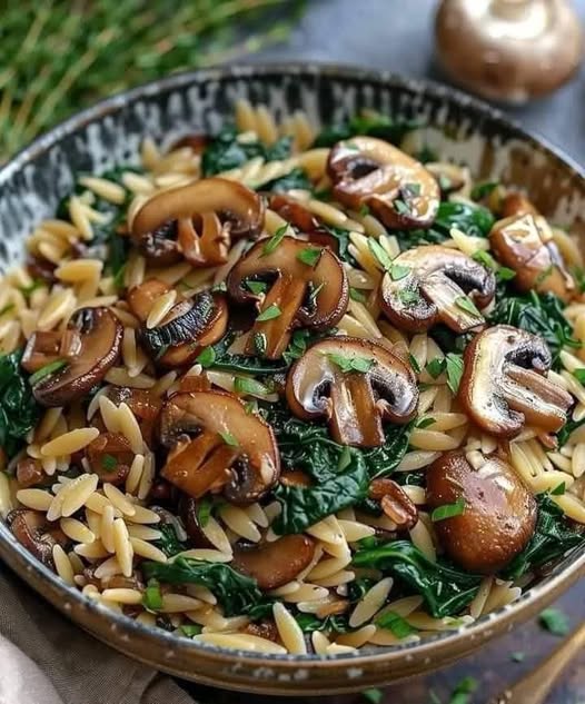 🥬🍄 Spinach Mushroom Orzo (Anti-Inflammatory)