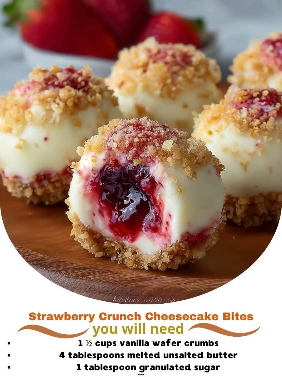 🍓 Recipe: Strawberry Crunch Cheesecake Bites