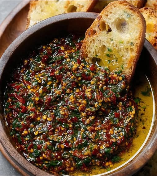 Sun-Dried Tomato Olive Oil Bread Dip is a rich, aromatic, and herb-infused dipping oil loaded with bold Mediterranean flavors. Sweet and tangy sun-dried tomatoes combine with garlic, herbs, olive oil, and optional cheese to create a restaurant-quality dip that pairs beautifully with warm crusty bread, focaccia, or toasted baguette. It’s quick to prepare, requires no cooking, and tastes even better as it sits.