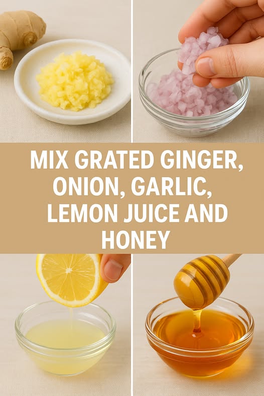 One of the best ways to support your body’s resilience is to combine grated ginger, onion, garlic, lemon, and honey. It functions as a biological defense enhancer and natural internal heater for your blood, chest, and throat. The gingerol, allicin, and antioxidants in these five components help thin out mucus and prevent the “heavy” and “congested” feeling of a seasonal slump, which is why this “hot, sharp, and sweet” routine works so well. It is a simple, inexpensive method of treating a chronic cough and maintaining quick, powerful energy. It instantly warms and revitalizes your entire body.
