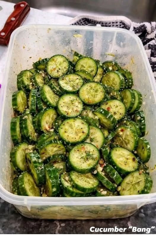 This dish is a lighter, plant-based riff on the classic “Bang Bang” flavor profile. Traditionally made with fried shrimp and mayo-heavy sauce, we’ve swapped the fats for a vinegar-based kick that highlights the crispness of the cucumber.